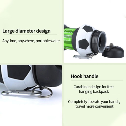Sportowe butelki na wodę na świeżym powietrzu silikonoweSkładany kubekButelka wody dla dzieci przenośne puchary sportowe dla dzieci 550ml w kształcie koszykówki w kształcie tenisa
