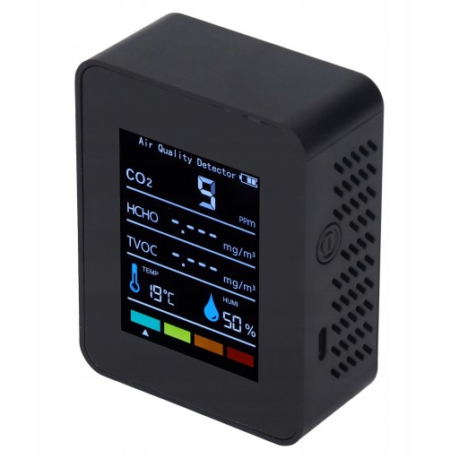 3. Monitor LCD: Detektor jakości powietrza ma czytelny wyświetlacz LCD, który wyświetla dane podczas kodowania kolorami.