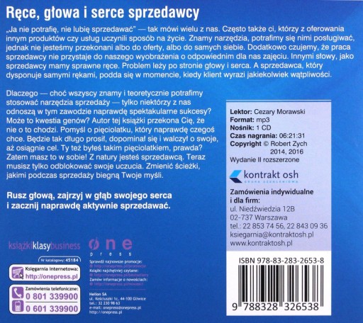 "Ja nie potrafię, nie lubię sprzedawać" - tak mówi wielu z nas. Często także ci, którzy z oferowania innym produktów czy usług uczynili sposób na życie. Znamy narzędzia, potrafimy się nimi posługiwać, jednak nie jesteśmy przekonani albo do oferty, albo do samych siebie. Dodatkowo czujemy, że praca sprzedawcy nie przystaje do naszego wyobrażenia o zajęciu dla nas odpowiednim. Innymi słowy, jako sprzedawcy mamy sprawne ręce. Problem leży po stronie głowy i serca. A sprzedawca, który dysponuje samymi rękami, podda się w momencie, w którym klient wyrazi jakiekolwiek wątpliwości. Dlaczego - choć wszyscy znamy i teoretycznie potrafimy stosować narzędzia sprzedaży - tylko niektórzy z nas odnoszą w tym zawodzie naprawdę spektakularne sukcesy? Może to kwestia genów? Autor tej książki przekona Cię, że nie o to chodzi. Pomyśl o pięciolatku, który naprawdę czegoś chce. Będzie tak długo prosił, dopominał się i walczył o swoje, aż osiągnie cel. Ty też byłeś takim pięciolatkiem, prawda? Zatem masz to w sobie! Z natury jesteś sprzedawcą. Teraz musisz tylko odblokować swoje uczucia. Zmienić ścieżki, jakimi podczas sprzedaży biegną Twoje myśli. Rusz głową, zajrzyj w głąb swojego serca i zacznij naprawdę aktywnie sprzedawać. Gen sprzedawcy to doskonałe kompendium wiedzy każdego aktywnego handlowca. Autor przypomina najważniejsze umiejętności sprzedażowe, sposoby na skuteczne pozyskiwanie klientów, rozpoznawanie i zaspokajanie ich potrzeb, budowanie długotrwałych relacji oraz kompleksowe prowadzenie szeroko pojętej sprzedaży. Całość wsparta licznymi przykładami z życia autora powoduje, że książka nie tylko posiada dużą merytoryczną wartość, ale również jest ciekawą lekturą. Gen sprzedawcy jest obowiązkową pozycją nie tylko dla wszystkich osób związanych ze sprzedażą, ale również dla pragnących poprawić proces swojego rozwoju zawodowego. - Paweł Orfinger, szef sprzedaży Laboratorium Kosmetycznego Dr Irena Eris S.A.