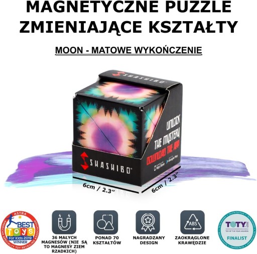 - INNE PUZZLE MAGNETYCZNE nierzadko okazują się NIETRAFIONE I NUDNE. W przeciwieństwie do nich opatentowana, NAGRADZANA kostka uspokajająca Shashibo zawiera 36 MAGNESÓW Z METALI Z ZIEM RZADKICH wykorzystanych do NOWATORSKIEGO projektu, który przekształca kostkę w PONAD 70 KSZTAŁTÓW. Antystresowa zabawka mieści się wygodnie w dłoni i zapewnia wiele godzin wciągającej zabawy. STYMULUJ zmysły NIEOGRANICZONYMI możliwościami twórczymi! CZY POTRAFISZ OPANOWAĆ ZMIENIAJĄCĄ KSZTAŁTY KOSTKĘ?