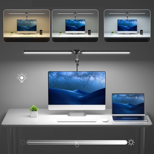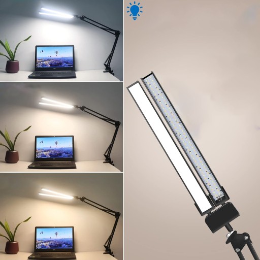 ☘️Ta lampa biurkowa LED ma podwójną głowicę, którą można obracać o 360 stopni, co pozwala regulować kąt listwy świetlnej.