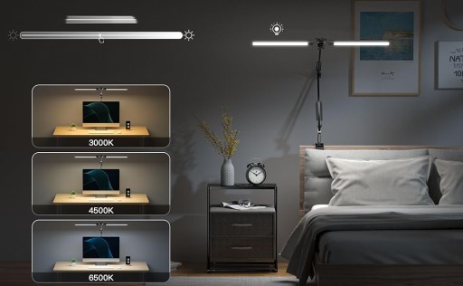 ✅Funkcja ciągłego przyciemniania spełnia różne potrzeby oświetleniowe.Światło jest bardzo jednolite, co może zapobiec uszkodzeniu oczu przez niebieskie światło i poprawić wydajność pracy.