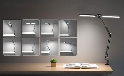 💻Konstrukcja z podwójną głowicą składane ramię lampy na gęsiej szyi lampa z szerokim zaciskiem, możesz regulować kierunek głowicy lampy w razie potrzeby podczas pracy.
