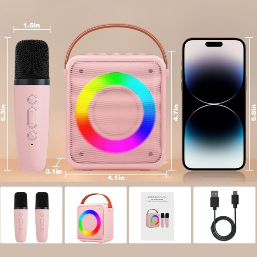 -Łatwo podłącz kartę TF, porty wejściowe USB i AUX i używaj go z telefonami komórkowymi, tabletami i komputerami, aby uzyskać naprawdę wszechstronne wrażenia karaoke.