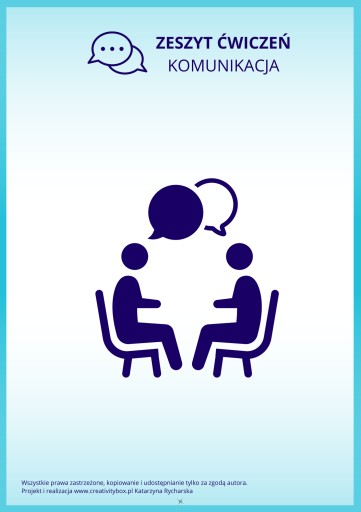 Umiejętność komunikacji jest jedną z ważniejszych kompetencji w życiu zawodowym i prywatnym. Skuteczne komunikowanie bez przemocy, za pomocą asertywnej postawy, pomaga wyrażać nasze uczucia, potrzeby oraz realizować postawione cele. Zeszyt „Komunikacja” to zestaw ćwiczeń w atrakcyjnej formie graficznej, które pomogą w ćwiczeniu komunikacji oraz przedstawiają aspekty komunikacji interpersonalnej. Karty pracy przeznaczone są dla coachów, terapeutów, trenerów i do pracy własnej. Przygotowane są na podstawie Cyklu Kolba, czyli nauce przez doświadczenie, zgodne z filozofią, że zasoby są w nas, trzeba je tylko odkryć, a to, co doświadczone, zostaje na dłużej. Z zeszytu dowiesz się między innymi, jak dawać informację zwrotną, odpowiadać na krytykę, jak powinna wyglądać otwarta postawa ciała w prezentacji, jak komunikować asertywnie oraz poznasz bariery skutecznego komunikowania. Nauczysz się asertywnej komunikacji i zrozumiesz, dlaczego, nie możesz się, z niektórymi osobami dogadać. Znajomość asertywnej komunikacji poprawi twoje relacje i nauczy cię radzić z trudnymi sytuacjami społecznymi.