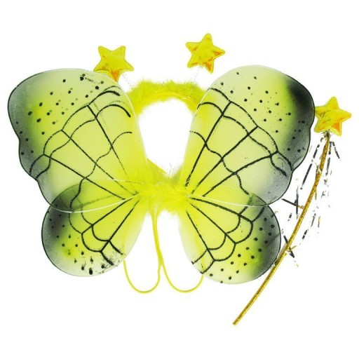 STRÓJ MOTYL WRÓŻKA SKRZYDŁA + OPASKA + RÓŻDŻKA ŻÓŁTE