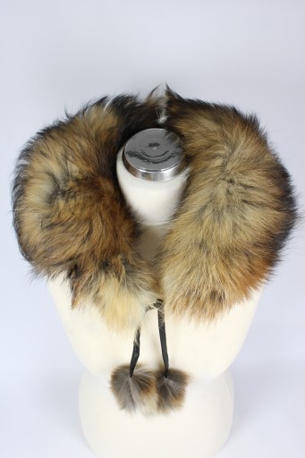 Kołnierz z ogonów jenota. Wykonany z miękkiego, sypkiego włosa, miłego w dotyku. Kolor beż z czarną końcówką włosa.