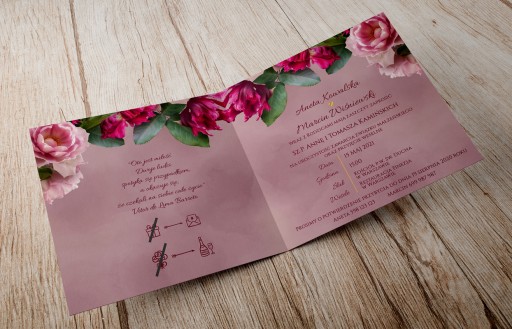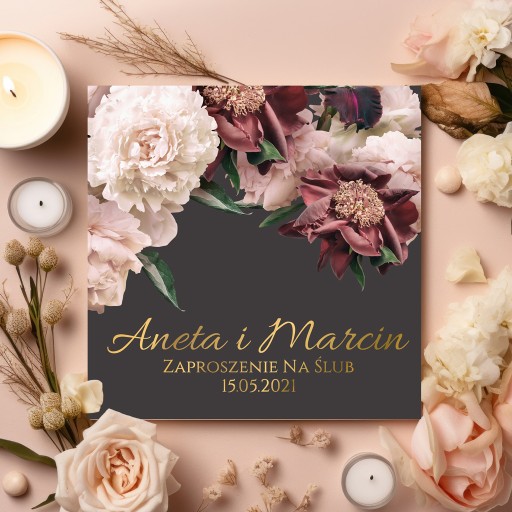 Zaproszenia ślubne, z kolekcji Floral z pięknymi kwiatowymi kompozycjami na gustownym tle, drukowanymi na sztywnym białym papierze. Zaproszenia ślubne drukujemy tylko na podstawie naszych szablonów graficznych dostępnych poniżej na wizualizacjach. Nie ma możliwości zmiany kolorystyki wzorów graficznych i czcionki. Zmienia się jedynie tekst personalizacji. Teksty można dowolnie edytować lub usuwać. Zaproszenia ślubne są drukowane w pełnym kolorze.