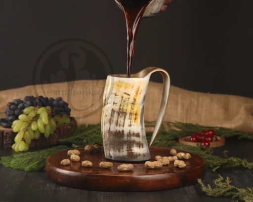 POCHWAL SIĘ SWOIM CAŁKOWICIE WYJĄTKOWYM KUFLEM - Sekretnym składnikiem doskonale wykonanego rogu miodowego jest dbałość o konstrukcję. Nasi rzemieślnicy od pokoleń tworzą rogi do picia. Każdy z naszych kubków rogowych jest ręcznie wybierany, ręcznie wycinany i ręcznie polerowany do niemal perfekcji (mówimy „prawie”, ponieważ jako przedmioty ręcznie robione żaden róg nie jest całkowicie doskonały).