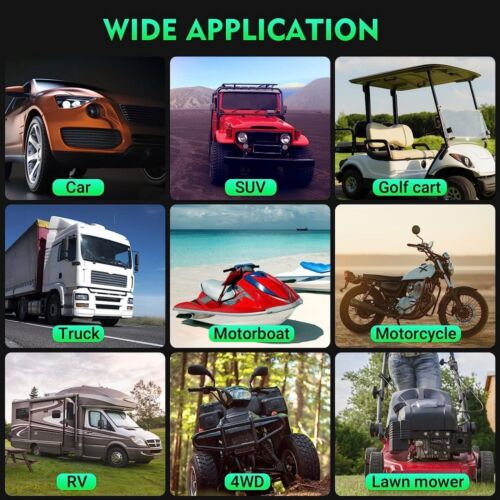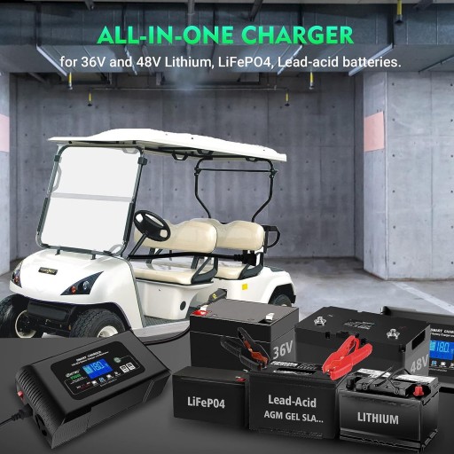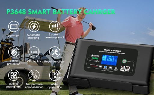 【Szeroki zakres zastosowań】 Ładowarka akumulatorów 36 V i 48 V do samochodów, motocykli, łodzi, wózków golfowych, EZGO TXT, kamperów, ciężarówek, pojazdów rolniczych, statków, łodzi motorowych, kosiarek, skuterów, SUV-ów i innych. Może ładować akumulatory litowe, LiFePO4 i ołowiowe (AGM, GEL, MF, EFB, WET, VRLA, SLA itp.). Jedna ładowarka do większości akumulatorów.