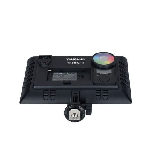 Lampa LED YONGNUO YN-300 Air II RGB to następca popularnego modelu YN-300 Air. Podobnie jak poprzednik, model Air II RGB oferuje płynną zmianę mocy oraz temperatury barwowej, lecz w nieco większym zakresie od 3200 do 5600 K. Jednocześnie oferuje szereg dodatkowych, nowoczesnych rozwiązań, jak zastosowanie diod RGB, zaprogramowane tryby tematyczne czy bezprzewodowe sterowanie pilotem. Wymiary panelu to 19 × 14 cm.