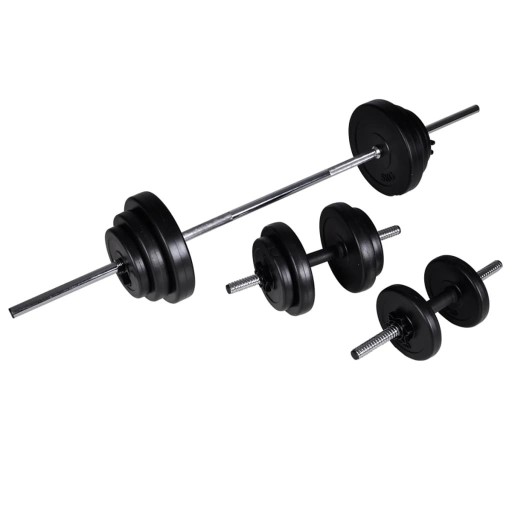 vidaXL Stojak na sztangę w zestawie ze sztangą i hantlami, 30,5 kg