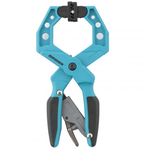 Ścisk kleszczowy marki GROSS przeznaczony jest do mocowania i trzymania detali i półwyrobów różnych konstrukcji o średnicy do 100 mm. Nakładki dociskowe na przegubach pozwalają umieszczać detale pod różnymi kątami. Mechanizm zapadkowy zapewnia niezawodne i sztywne mocowanie półwyrobów/detali w odróżnieniu od mechanizmu sprężynowych ścisków klamrowych. Po naciśnięciu na spust następuje natychmiastowe rozprężanie ścisku. Uchwyt dwuskładnikowy pozwala wygodnie trzymać narzędzie w dłoni podczas użytkowania.