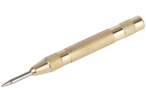 Przycisnąć punktak ostrym końcem do powierzchni materiału i silnie nacisnąć . Spowoduje to uderzenie iglicy i trwałe zaznaczenie punktu.