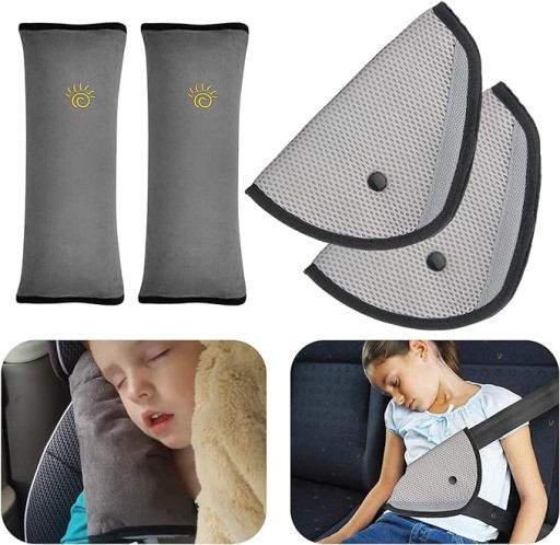 Bezpieczeństwo dzieci - otrzymasz 2 poduszki na pasy dla dzieci i 2 poduszki na pas samochodowy. Zwykłe pasy bezpieczeństwa są przeznaczone dla dorosłych i mogą nieprzyjemnie przylegać do szyi dzieci, poduszki i poduszki są miękkie i przestronne, aby chronić miękką szyję dziecka, dzięki czemu może spokojnie spać.
