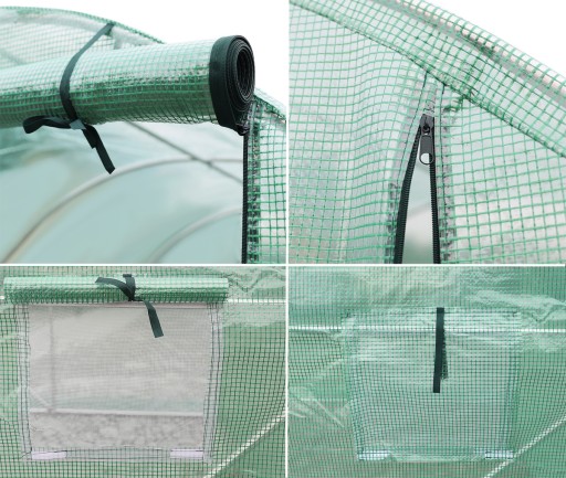 Szklarnia została zaprojektowana w przemyślany sposób. Posiada 4 okna z moskitierami i zasłonkami z folii, które chronią przed nadmiarem wilgoci zapewniając jednocześnie optymalny przepływ powietrza i odpowiedni dostęp do światła. Drzwi zamykane na zamek, pozwolą wygodnie wychodzić lub wchodzić do środka.