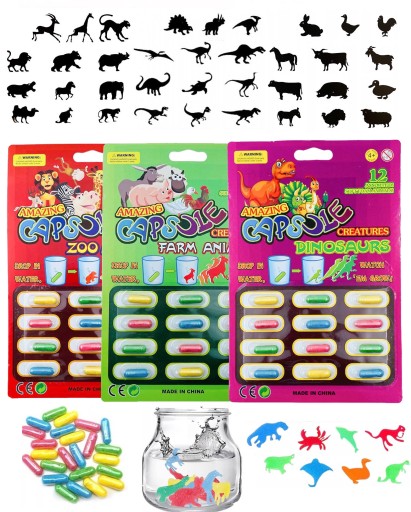 ВОЛШЕБНЫЕ КАПСУЛЫ ЖИВОТНЫЕ, РАСТУЩИЕ В ВОДЕ 36 ШТ ЗОО ФЕРМА ДИНОЗАВР