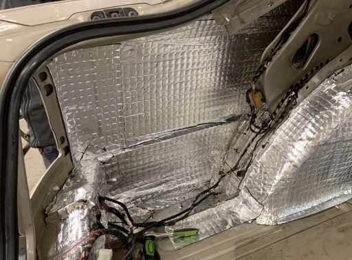 - Podłoga z przegrodą silnika: około 3,5 m2 maty butylowej + 3,5 m2 pianki kauczukowej;