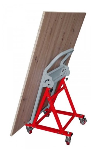 Wózek do transportu płyt Holzmann PW3040KIPP o maksymalnym obciążeniu 136 kg i odchylanym wsporniku transportowym (pozycja transportowa w pionie i pozycja pozioma do rozładunku).