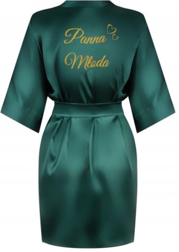 Złoty, brokatowy napis "Panna Młoda" nadaje szlafrokowi wyjątkowego charakteru i subtelnie podkreśla jego przeznaczenie. Możliwość wiązania w pasie za pomocą dołączonego paska pozwala dopasować szlafrok do figury, podkreślając kobiece kształty.