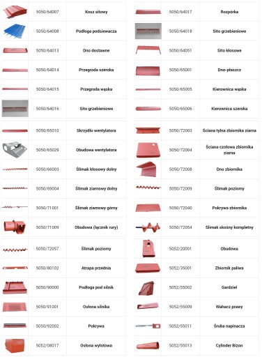 Podnośniki (rynny) kłosowe 5040/17071 i zbożowe 5040/20013 do Bizona Z-56 i podajnik kłosowy 5043/17007 i ziarnowy 5058/20025 do Z-58 Rekord (także Rekord niebieski 15cm) z obudową krotką 5052/20001 lub 5058/20006. Łańcuchy podajników kłosowych 5040/17026 i ziarnowych 5040/20023 i 5058/20019 do Z-58 oraz elementy dodatkowe: pokrywy 5040/17007, 5040/17021; przysłonka 5040/17070 i osłona łożyska 5043/17006. Z podajnikiem kłosowym łączy się: cylinder długi 5040/18047 ze ścianką 5040/18019, a w nim ślimak kłosowy górny 5040/18017. Z podajnikiem ziarnowym łączy się obudowa łącznik rury 5050/71009 lub przy Rekordzie obudowa ślimaka kompletna 5058/21025.