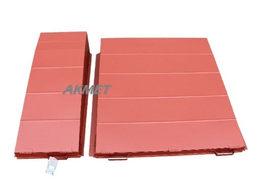Osłony posiadają na dole otwierane klapki na sprężynie dociskowej, które umożliwiają ewentualne usunięcie zanieczyszczeń nagromadzonych po całodziennej pracy kombajnu.