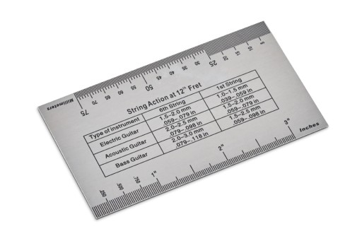 The RockCare Rock n' Ruler to wszechstronne narzędzie do ustawiania gitar i basów. Przy pomocy tej miarki z łatwością wyregulujesz akcję strun i odległość między nimi oraz nachylenie gryfu gitary. Wszystkie skale wydrukowano na miarce w dwóch wersjach: calowej i metrycznej, dzięki czemu nie ma potrzeby konwersji wymiarów. Druga strona miarki zawiera przydatne wskazówki, jak np. punkty odniesienia do ustawiania Twoich gitar elektrycznych, akustycznych i basowych. Urządzenie ma rozmiary wizytówki; bez problemu mieści się do portfela i w razie potrzeby możesz mieć je zawsze przy sobie.