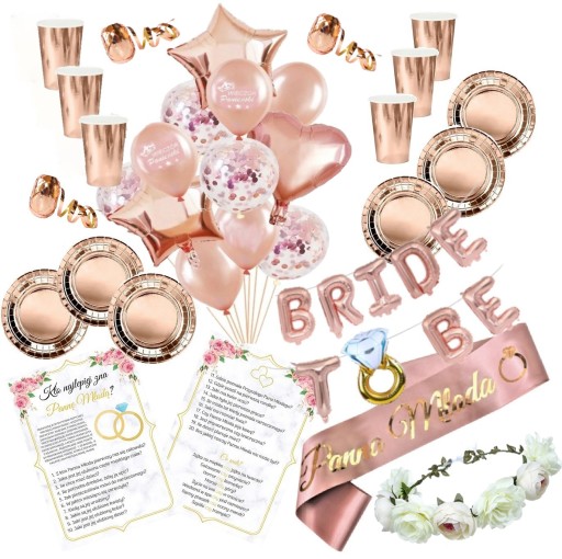 Zestaw na Wieczór Panieński zawierający balony, wianek, grę i szarfę z napisem "Panna Młoda" jest idealnym dodatkiem do organizacji niezapomnianego i wyjątkowego przyjęcia. Balony mogą być przyczepione do ścian lub zawieszone w powietrzu. Szarfa i wianek wyróżnią Pannę Młodą z całego grona uczestniczek wieczoru.