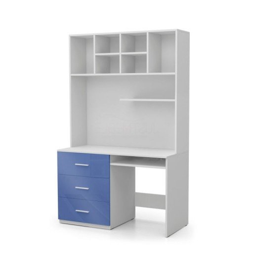 Regał z biurkiem Pradise to nowoczesne i funkcjonalne biurko z nadstawką idealne do pokoju młodzieżowego. Biurko posiada trzy szuflady, na biurko umieszczona jest pojemna nadstawka z półkami otwartymi na książki lub inne drobiazgi.