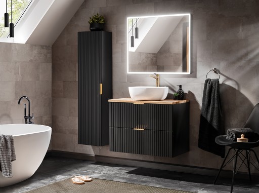 Szafka łazienkowa ADEL BLACK 82-80 z umywalką i blatem – aranżacja: