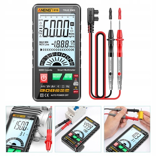 Wielofunkcyjny, może testować napięcie AC i DC, prąd AC i DC, rezystancję, częstotliwość, temperaturę, diodę, test włączania i bezkontaktowe wykrywanie napięcia przemiennego.
