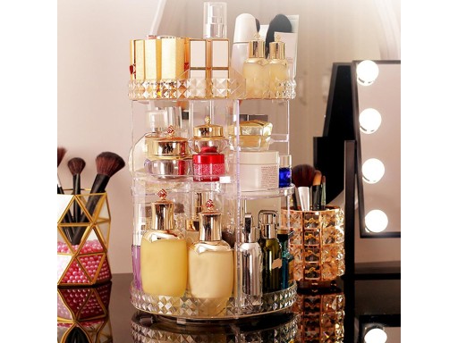 Obracany o 360 stopni ułatwia dostęp do kosmetyków. Posiada 7 poziomów, które możemy w dowolny sposób przekładać w zależności od potrzeb. Organizer pomaga zaoszczędzić miejsce i uporządkować nasze akcesoria kosmetyczne. Łatwy w czyszczeniu, idealny na prezent.