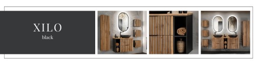 XILO BLACK to nowa kolekcja mebli łazienkowych, która charakteryzuje się prostotą i elegancją. Jej wyjątkowym elementem jest pionowe ryflowanie oraz zintegrowany podchwyt, co nadaje kolekcji delikatnego i nowoczesnego charakteru. Meble wykonane w kolorze dębu wotan, w połączeniu z ciemno szarym korpusem, tworzą harmonijne zestawienie kolorystyczne, pasujące do każdego stylu wnętrza łazienkowego.