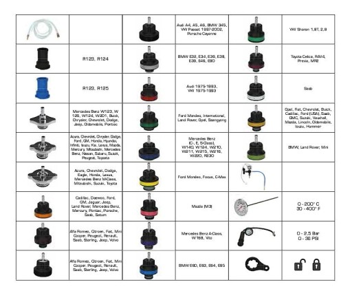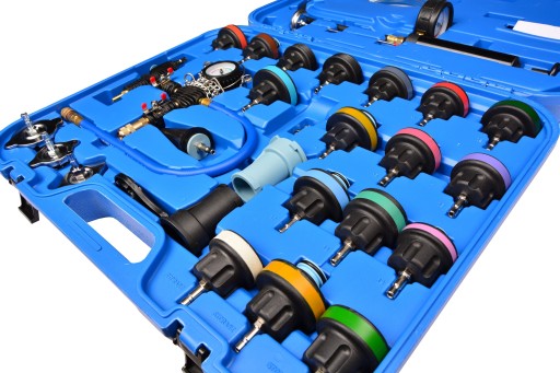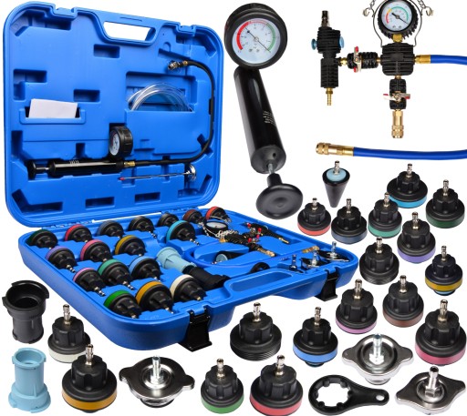 Tester układu chłodzenia do samochodów osobowych. Tester jest prosty w obsłudze i nie wymaga specjalistycznej wiedzy. Duża ilość adapterów sprawia że tester pasuje do dużej ilości samochodów.