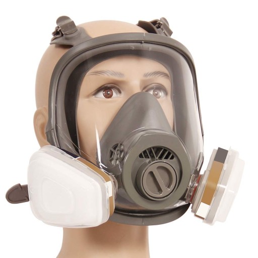 Maska przeciwgazowa przyjmuje podwójny silikon, który może ściśle przylegać do twarzy i odgrywać rolę ścisłej ochrony. Pakiet zawiera: 1x maska pełnotwarzowa, 2x wkłady filtracyjne 6001CN, 12x filtry