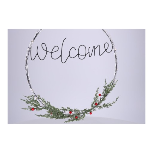 Wianek świąteczny LED "WELCOME" to minimalistyczny i nowoczesny element przyciągający wzrok na drzwi wejściowe lub ścianę.