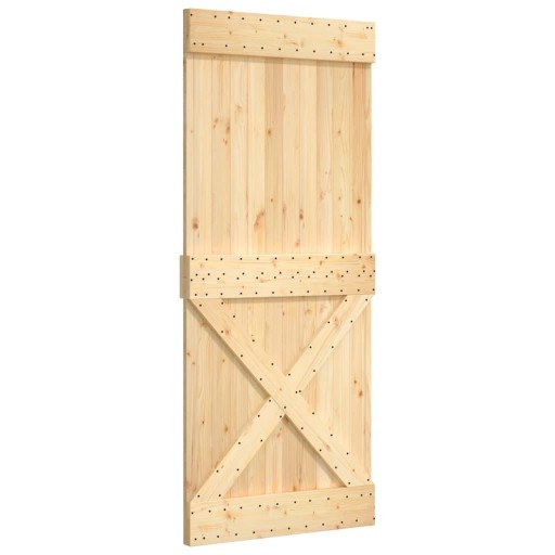 Te drzwi z litego drewna sosnowego zaprojektowano z myślą o wzbogaceniu wejścia do Twojego domu i zapewnieniu mu większego bezpieczeństwa. Drewno sosnowe: drzwi wewnętrzne wykonano z litego drewna sosnowego. Drewno sosnowe to piękny, naturalny materiał. Ma ono prostą strukturę słojów, a sęki nadają mu wyjątkowy, rustykalny wygląd.Oszczędność przestrzeni: drzwi przesuwne pozwalają zaoszczędzić miejsce i sprawiają, że pomieszczenie jest bardziej przestronne. Jest to najlepszy wybór do prostych wnętrz o nowoczesnym klimacie. Wiele zastosowań: drzwi przesuwne można zamontować zarówno na ścianach drewnianych, jak i betonowych. Sprawdzą się w sypialni, kuchni, garażu, a także w stodole! Warto wiedzieć:Możesz uzupełnić drzwi NARVIK o oszałamiającą szynę do drzwi przesuwnych z naszej kolekcji SKIEN. Przed zakupem upewnij się, że rozmiar szyny odpowiada rozmiarowi drzwi.