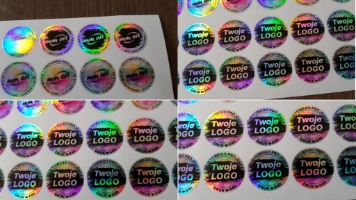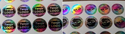 Hologramem jest materiał na którym drukujemy projekt. Im jaśniejszy kolor nadruku tym bardziej wtapia się w tło i przyjmuje metaliczny odcień. Białe i przezroczyste obszary w projekcie pozostaną niezadrukowane, czyli właśnie w tych miejscach będzie najsilniejszy efekt blasku. Czarny nadruk jest kolorem kryjącym i w tym obszarze nie przebija się blask.