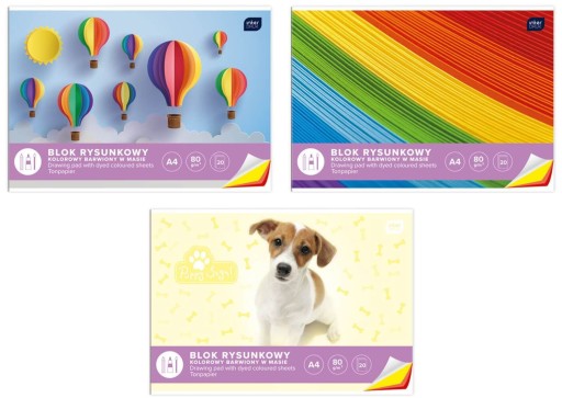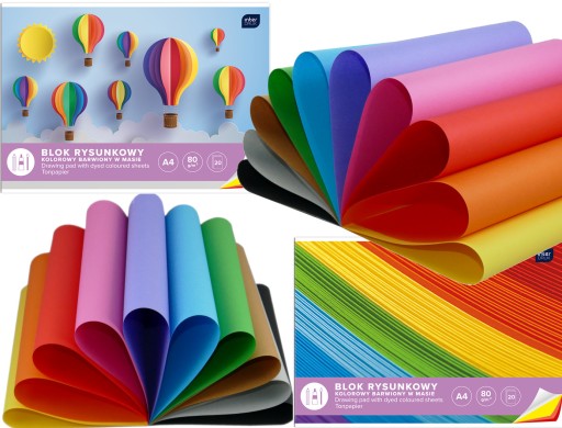 Blok zawiera 20 kolorowych kartek o gramaturze 80 g/m2 w formacie A4.