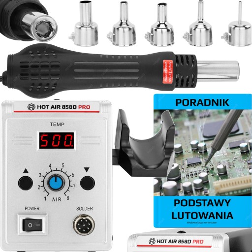 Kompaktowa stacja hot air uniwersalnego przeznaczenia, jest rozwinięciem znanego i sprawdzonego modelu 858D. Stacja może służyć zarówno do prac lutowniczych w zakresie elektroniki jak i np. do spawania plastików. Ten model stacji jest bardzo uniwersalny, tak do naprawy elektroniki, lub jako spawarka do naprawy pękniętych elementów plastikowych, np. zderzaków aut.