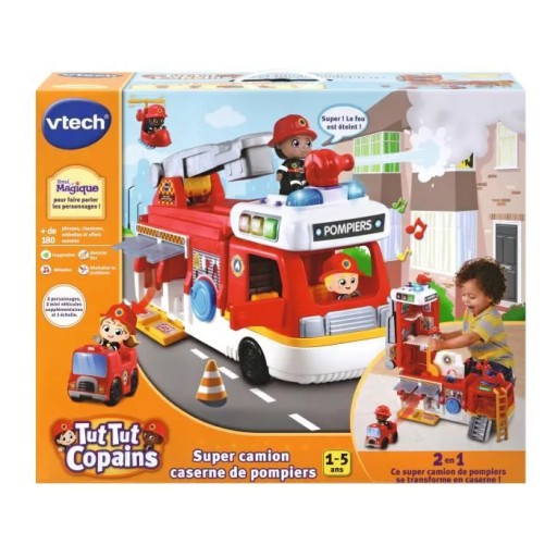 Wóz strażacki przekształca się w budkę straży pożarnej. Dziecko odkrywa garaż z mini pojazdem, rampę do wsiadania i wysiadania ze straży pożarnej i wiele więcej! W tej interaktywnej zabawce znajduje się wiele realistycznych elementów rozwijających umiejętności motoryczne (rampa strażacka, flaga, drabina itp.).