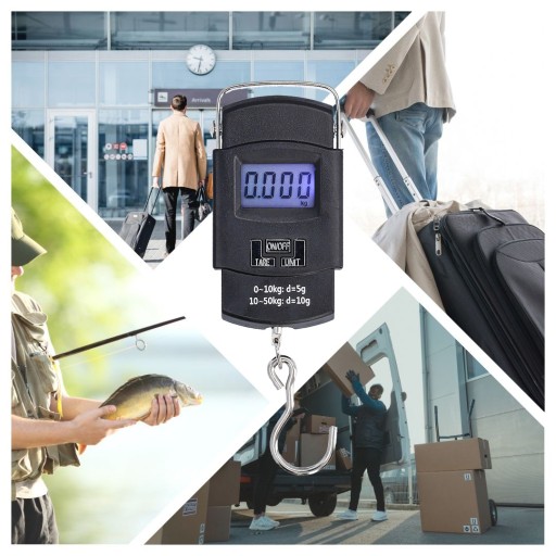 Waga bagażowa kieszonkowa podróżna wędkarska hakowa wisząca ręczna LCD 50kg