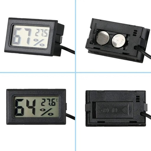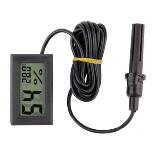 Elektroniczny higrometr (wilgotnościomierz) z termometrem i dużym wyświetlaczem LCD. Urządzenie może zostać umieszczona w zasadzie w dowolnym miejscu, np. akwarium, terrarium, lodówce, zamrażarce, szklarni itd. Wszędzie tam, gdzie potrzebujemy dokładnego pomiaru temperatury w granicach od -50 do 70 stopni Celsjusza.
