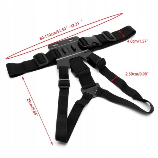 Przedmiotem oferty są regulowane szelki na klatkę piersiową przeznaczone do mocowania kamery sportowej.
