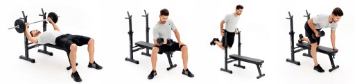UWAGA! Sztanga i zestawy obciążeń nie są częcią zestawu. Zdjęcia poglądowe przedstawiają możliwości prowadzenia treningu