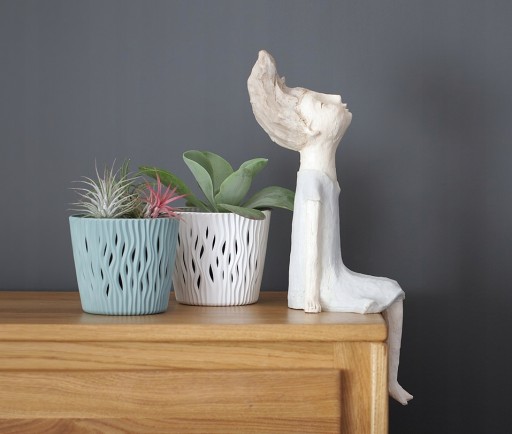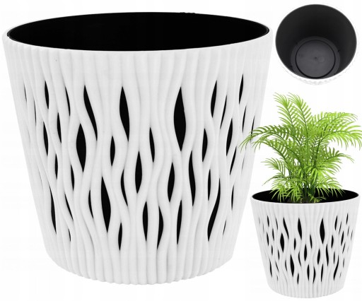 Jest to zestaw 2w1 - do doniczki dołączony jest wkład, który odprowadzi nadmiar wody i pozwoli na ograniczenie ilości wykorzystywanej ziemi do uprawy. Wkład jest też przydatny kiedy chcemy szybko i bezproblemowo zmienić samą osłonkę kwiatka i przearanżować nasze wnętrze