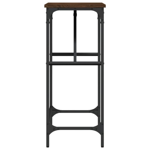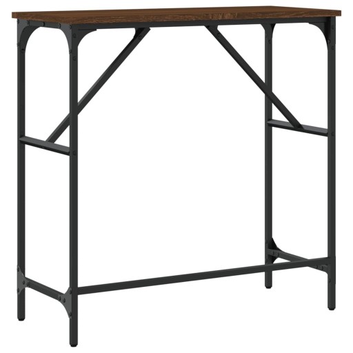 Dodaj odrobinę elegancji do przedpokoju, salonu lub przedpokoju dzięki temu stylowemu stolikowi konsolowemu. Trwały materiał: materiał drewnopochodny cechuje się wyjątkową jakością i gładką powierzchnią, a także wytrzymałością, stabilnością i odpornością na wilgoć. Wykonany z materiału drewnopochodnego stolik jest łatwy do czyszczenia.Solidny blat: wytrzymały blat stolika do przedpokoju sprawdzi się idealnie do postawienia ramek ze zdjęciami, roślin doniczkowych i innych przedmiotów dekoracyjnych.Regulowane nóżki: cztery regulowane nóżki z plastikowymi nasadkami umożliwiają utrzymanie równowagi na nierównym podłożu, a tym samym zwiększają stabilność mebla.Metalowa rama: metalowa rama wprowadzi do wnętrza nieco industrialnego stylu, zapewniając jednocześnie stabilność mebla. Ostrzeżenie:Aby zapobiec przewróceniu się mebla, musi on zostać przymocowany do ściany za pomocą dołączonego elementu.