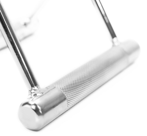 UW05 HMS to podwójny uchwyt, przeznaczony do treningu na wyciągu górnym i dolnym. Służy do ćwiczenia mięśni grzbietu, ale sprawdzi się również przy wykonywaniu ćwiczeń z połową sztangi ( druga połowa oparta o parkiet). Jej gryf idealnie wpasowuje się w środek uchwytu, co umożliwia swobodne wykonywania ćwiczenia wiosłowania połową sztangi w opadzie tułowia. Trójkątna budowa uchwytu jest gwarancją idealnego ułożenia dłoni i wymuszenia przy tym prawidłowego ruchu w trakcie wykonywanego ćwiczenia. Stalowa, chropowata rękojeść zapewnia pewny chwyt oraz zapobiega wyślizgnięciu się przyboru z ręki, jednocześnie wymagając od nas mocniejszego chwytu. Dzięki temu pracujemy również nad rozbudową mięśni przedramienia. Niezbyt szeroki rozstaw rękojeści ułatwia utrzymanie prawidłowego toru ruchu, czyli prowadzenie łokci blisko tułowia. Wykonanie z wysokiej jakości stali pozwala na trening ze znacznym obciążeniem. Model UW05 pomoże łatwo i skutecznie rozbudować mięśnie grzbietu, które według niektórych są najważniejsze dla naszego układu mięśniowego. Przeznaczony do wyciągu górnego i dolnego