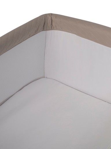 Tapicerka zewnętrzna wykonana została z modnej pikowanej tkaniny z delikatnym meszkiem. Dzięki nie łóżeczko BYSIDE prezentuje się bardzo gustownie i jest przyjemne w dotyku. W połączeniu z grafitowym stelażem z pewnością wkomponuje się w wystrój każdej sypialni.