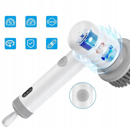 - Elektryczna szczotka szorująca wyposażona jest w akumulator typu C o pojemności 2200 mAh umożliwiający szybkie ładowanie.